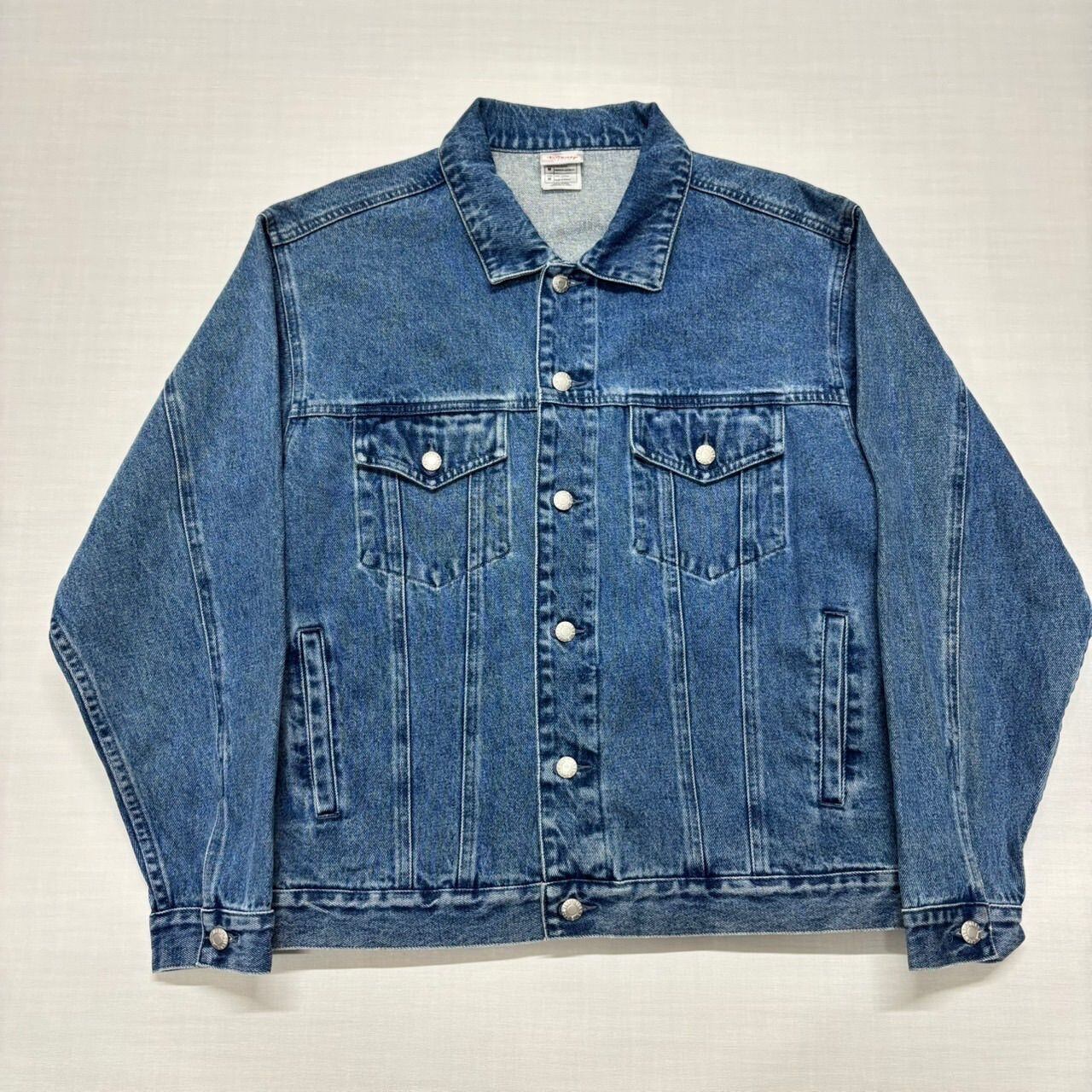 全体的に古着特有の着用感や色落ちはありますが、デニムの良い味が出ています。バックプリントの擦れ感はヴィンテージの風合いとしてお楽しみください。目立つ致命的なダメージはありません。