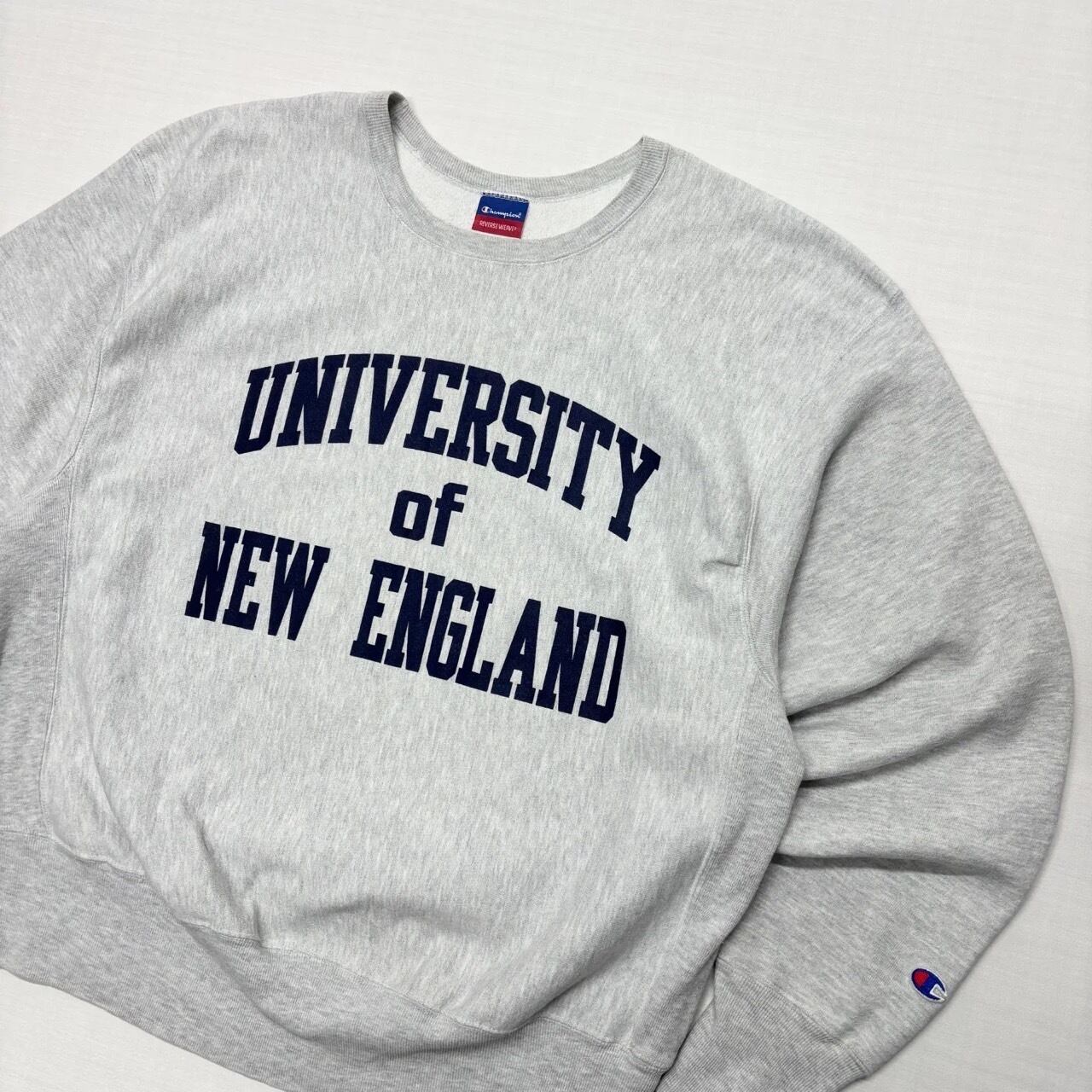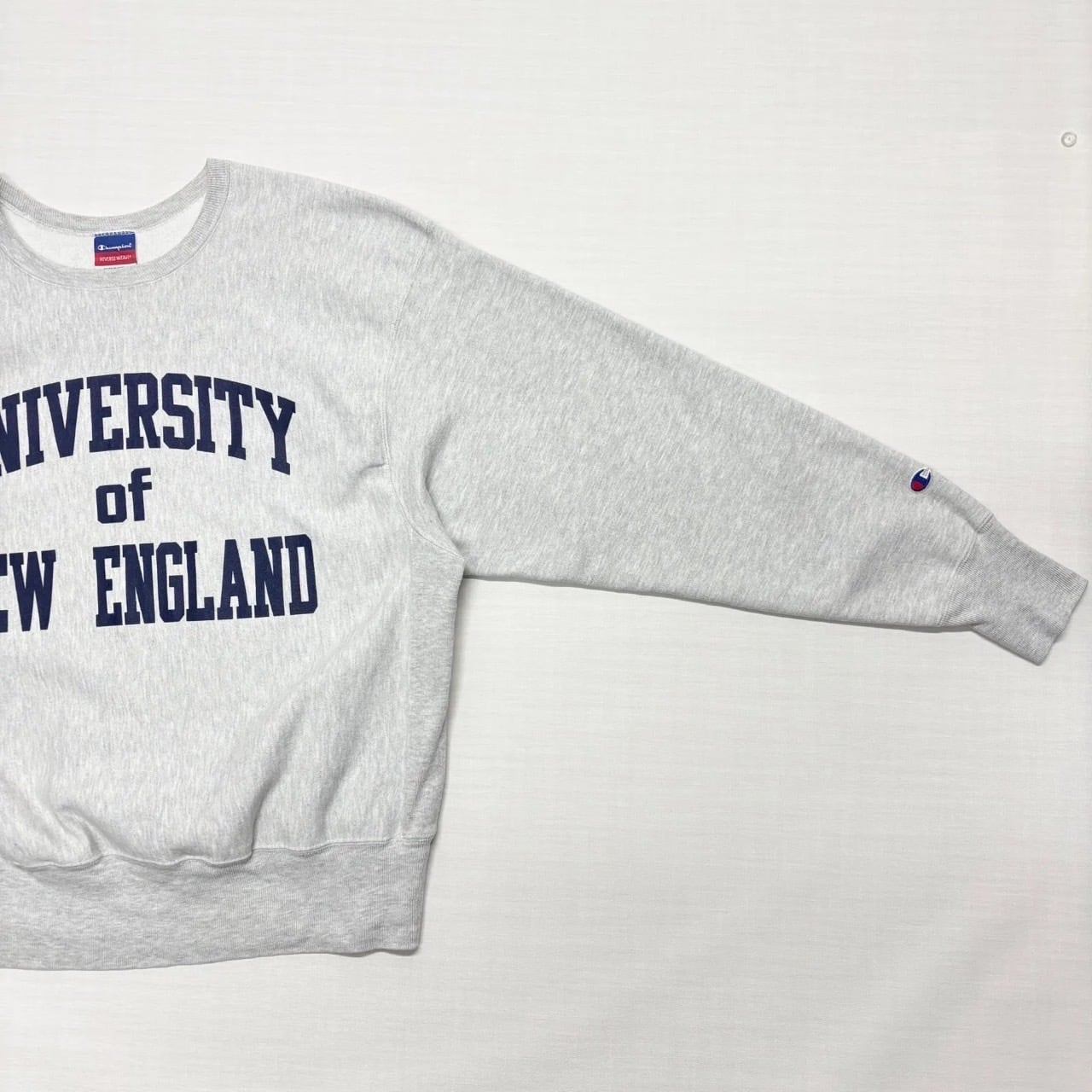 【ATTO】チャンピオン リバースウィーブ XL グレー カレッジ 3段プリント メキシコ製 Champion Reverse Weave スウェット 古着 トレーナー 90s 00s UNIVERSITY of NEW ENGLAND メンズ オーバー【3124ST】