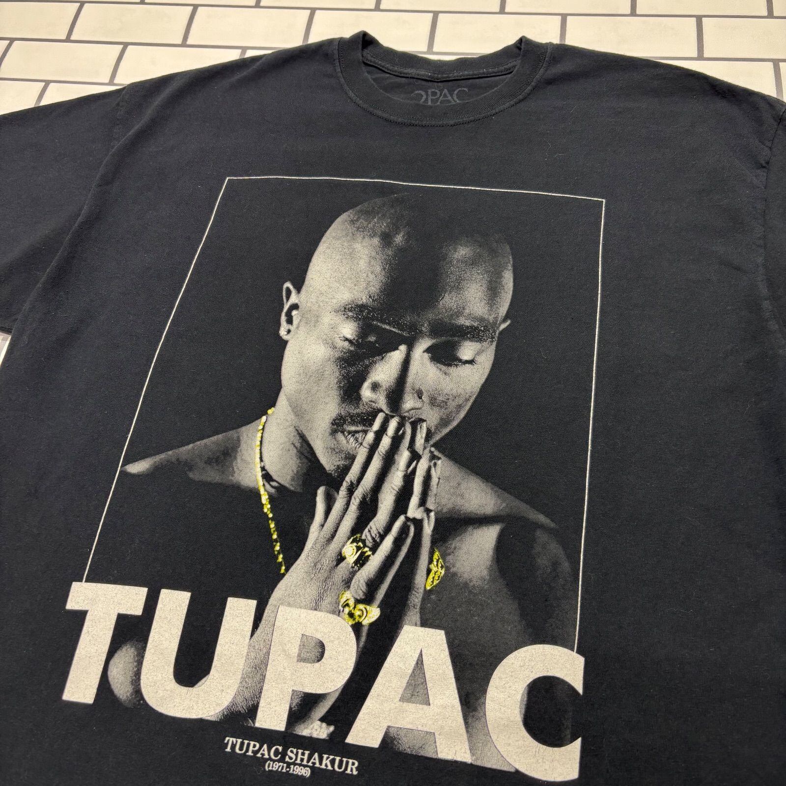 ヒップホップ界のレジェンド「2PAC(Tupac Shakur)」のオフィシャルプリントTシャツです。