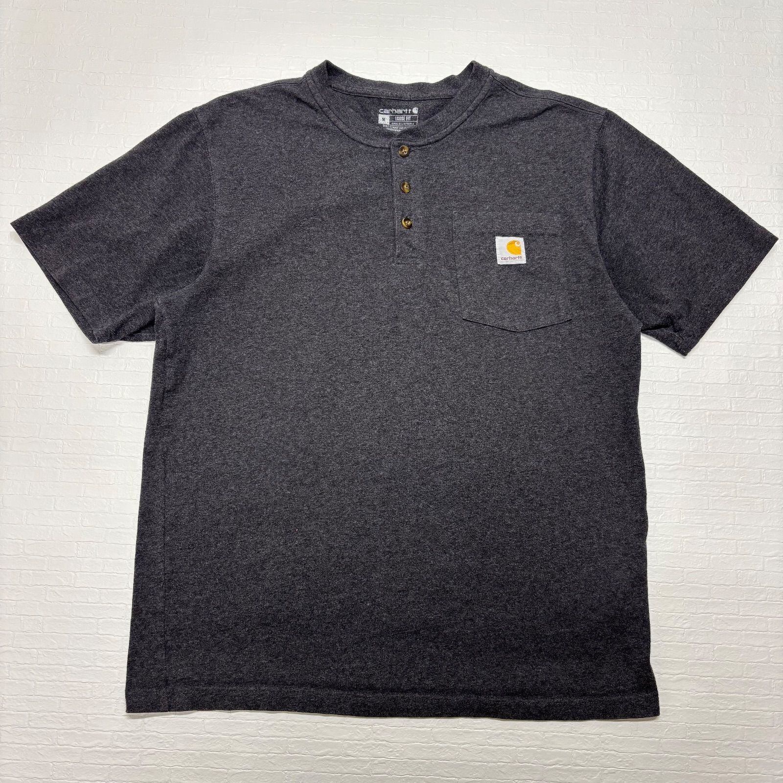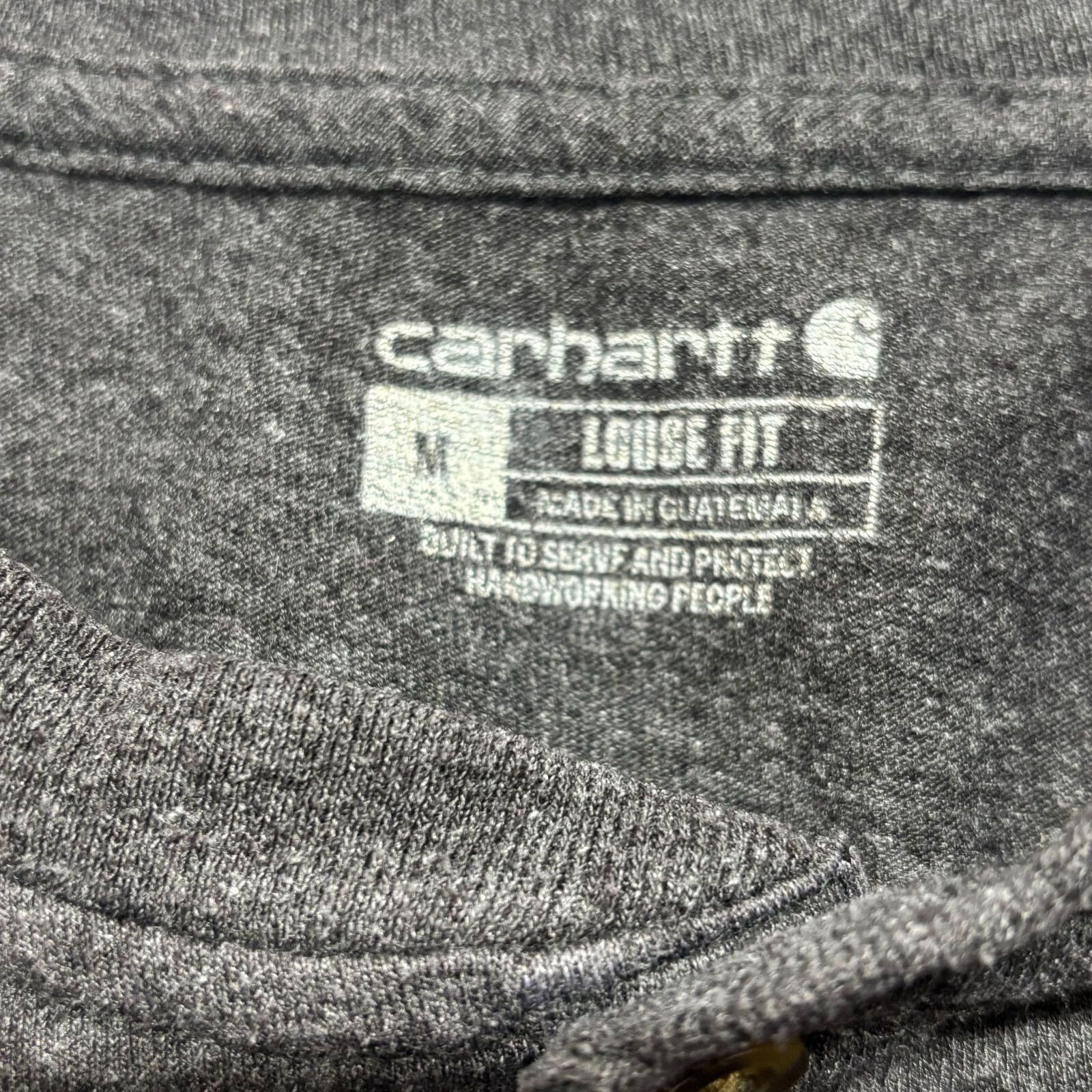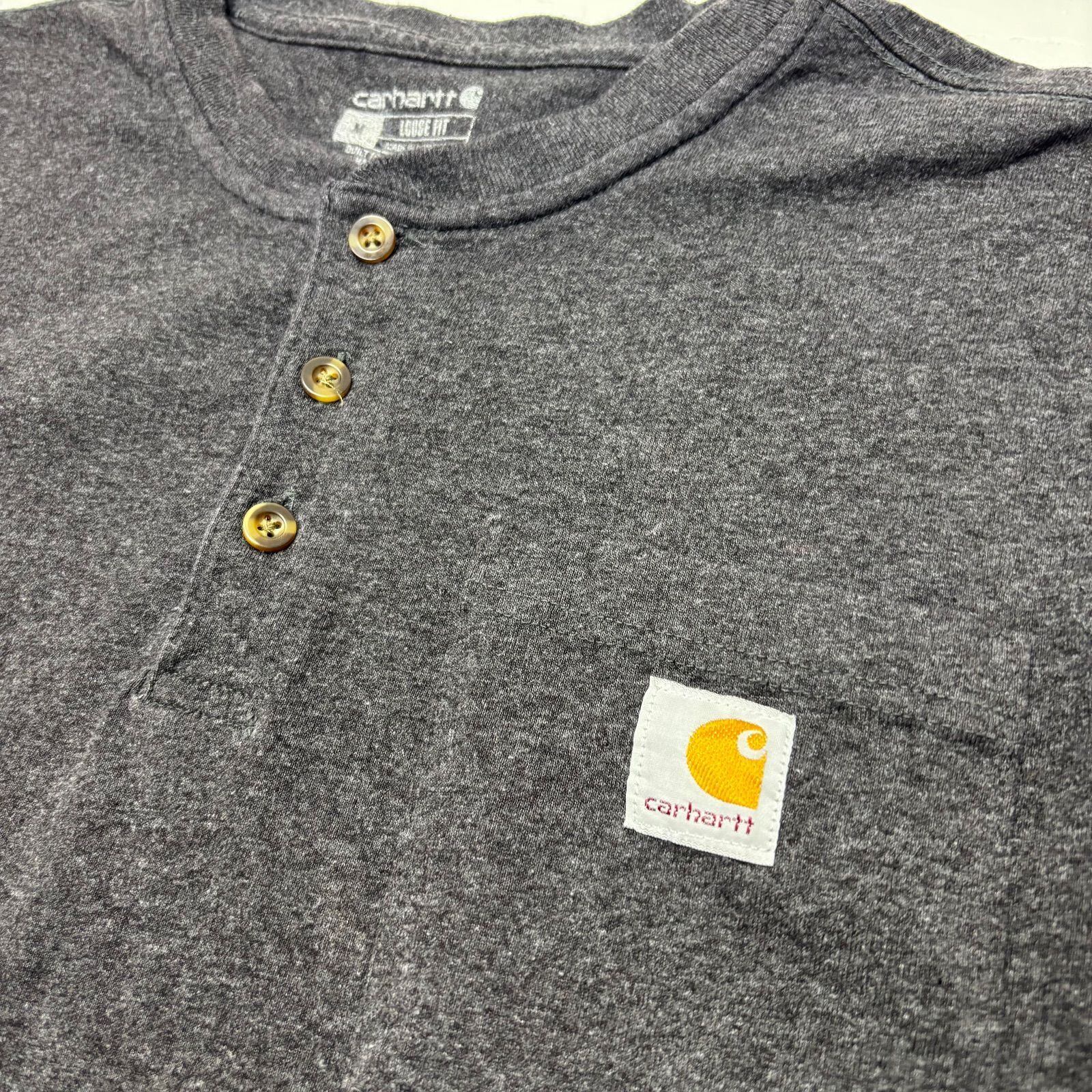 【ATTO】Carhartt カーハート ヘンリーネック 半袖 Tシャツ ポケT チャコールグレー 霜降り Lサイズ相当 ルーズフィット LOOSE FIT ロゴタグ ワーク アウトドア メンズ 古着 アメカジ ボタン 前開き 飾りボタン【1145ST】