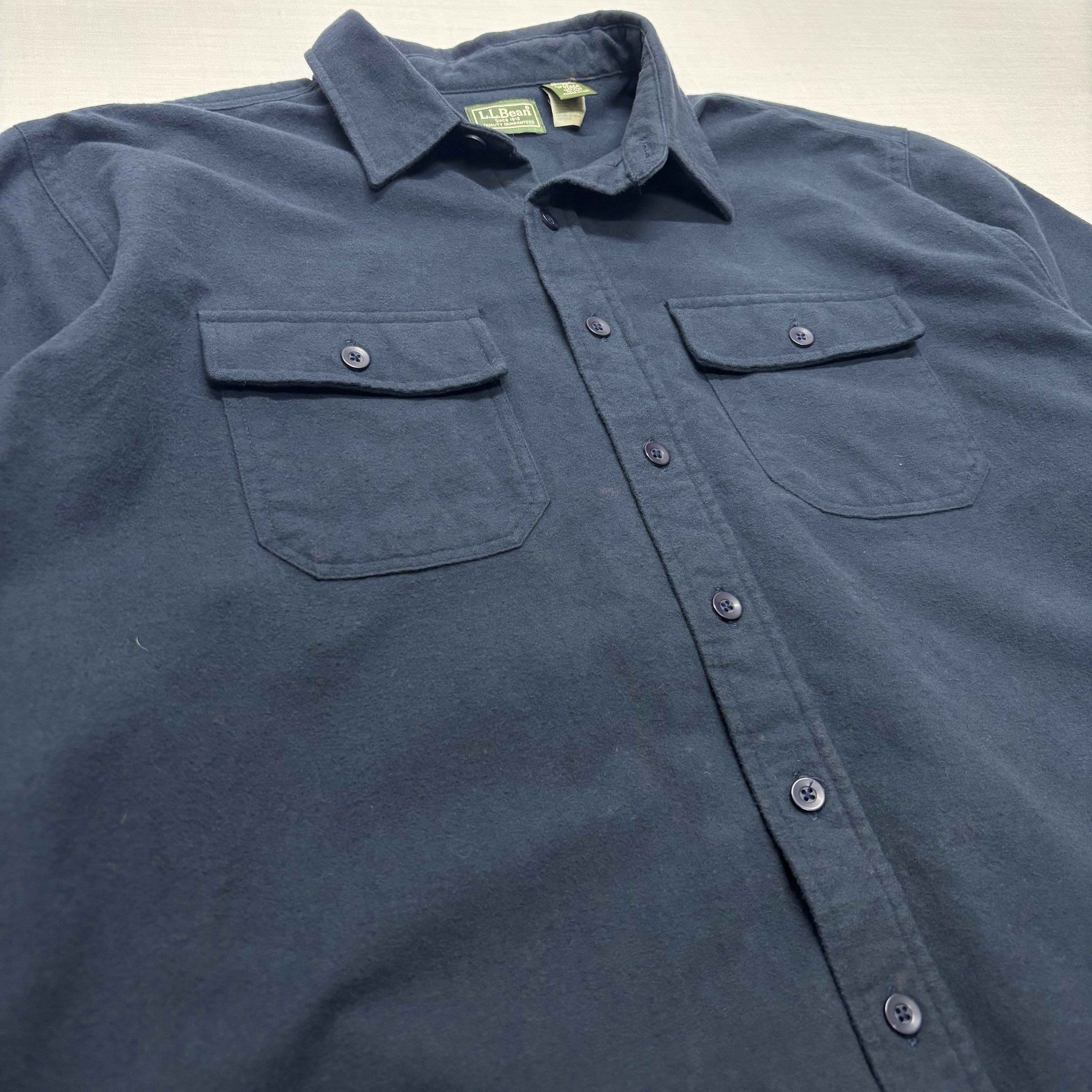 【ATTO】90s USA製 L.L.Bean シャモアクロス シャツ XL ネイビー 紺 無地 厚手 ヘビーネル エルエルビーン アウトドア ビンテージ 古着 メンズ オーバーサイズ ネルシャツ 起毛 コットン アメカジ ストリート【2068ST】