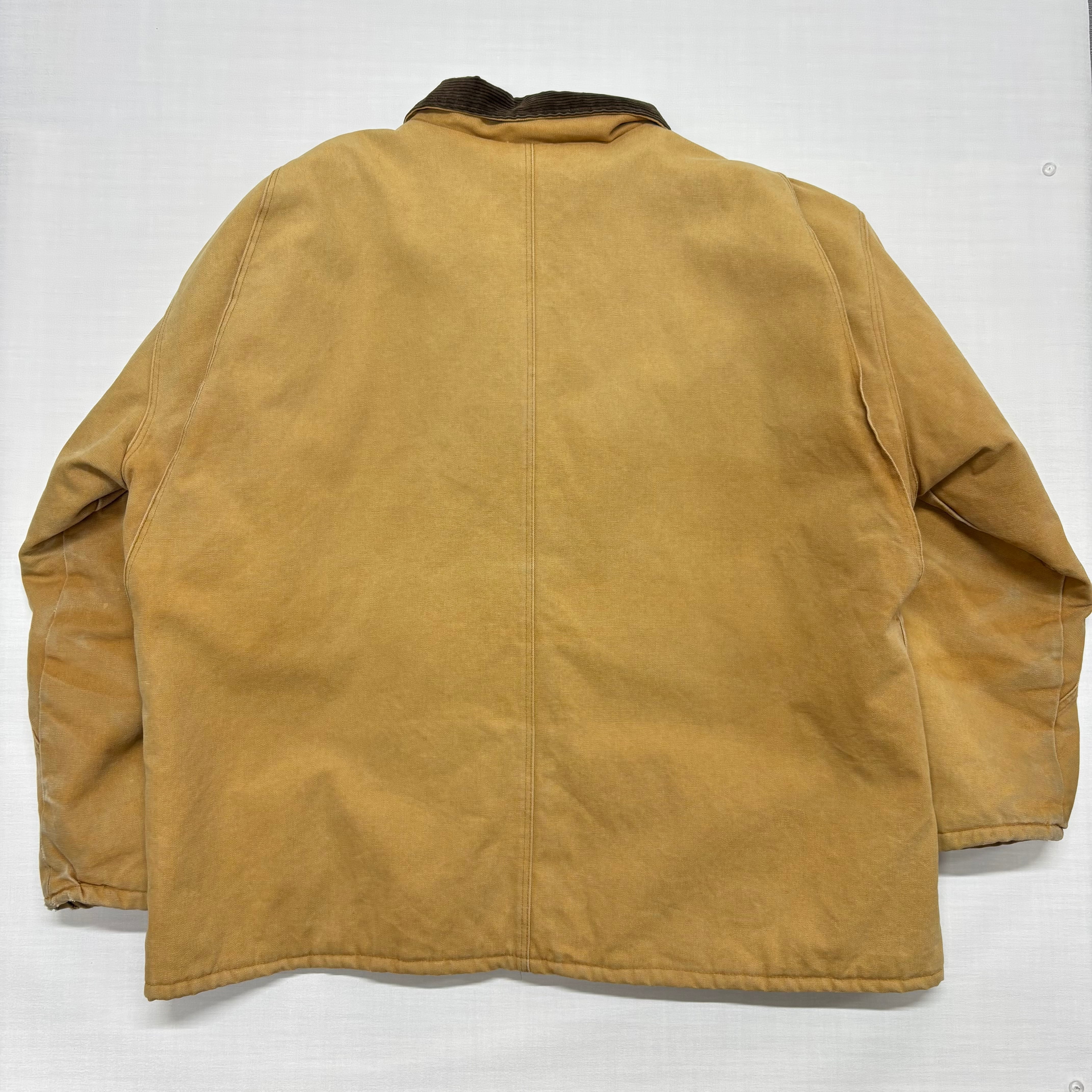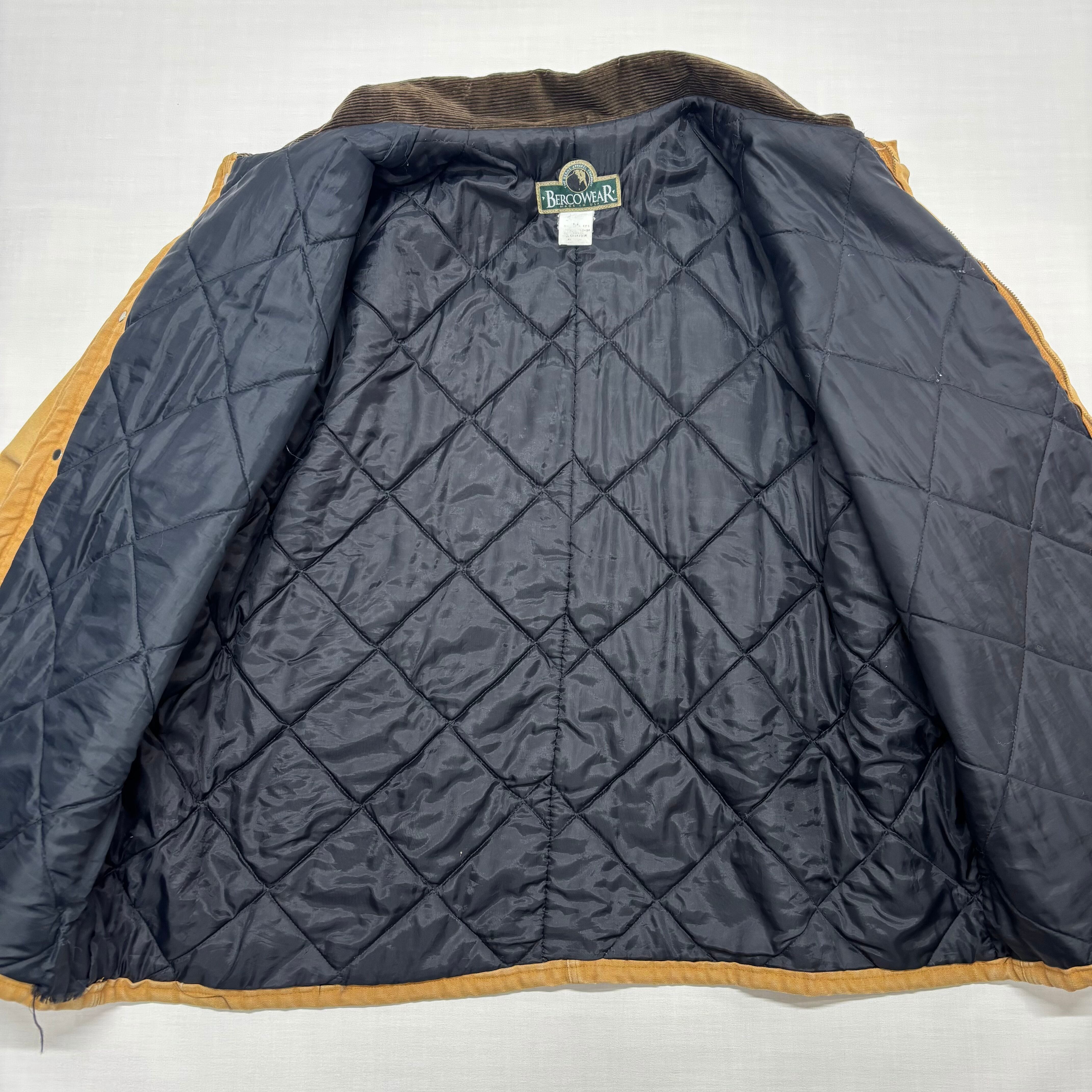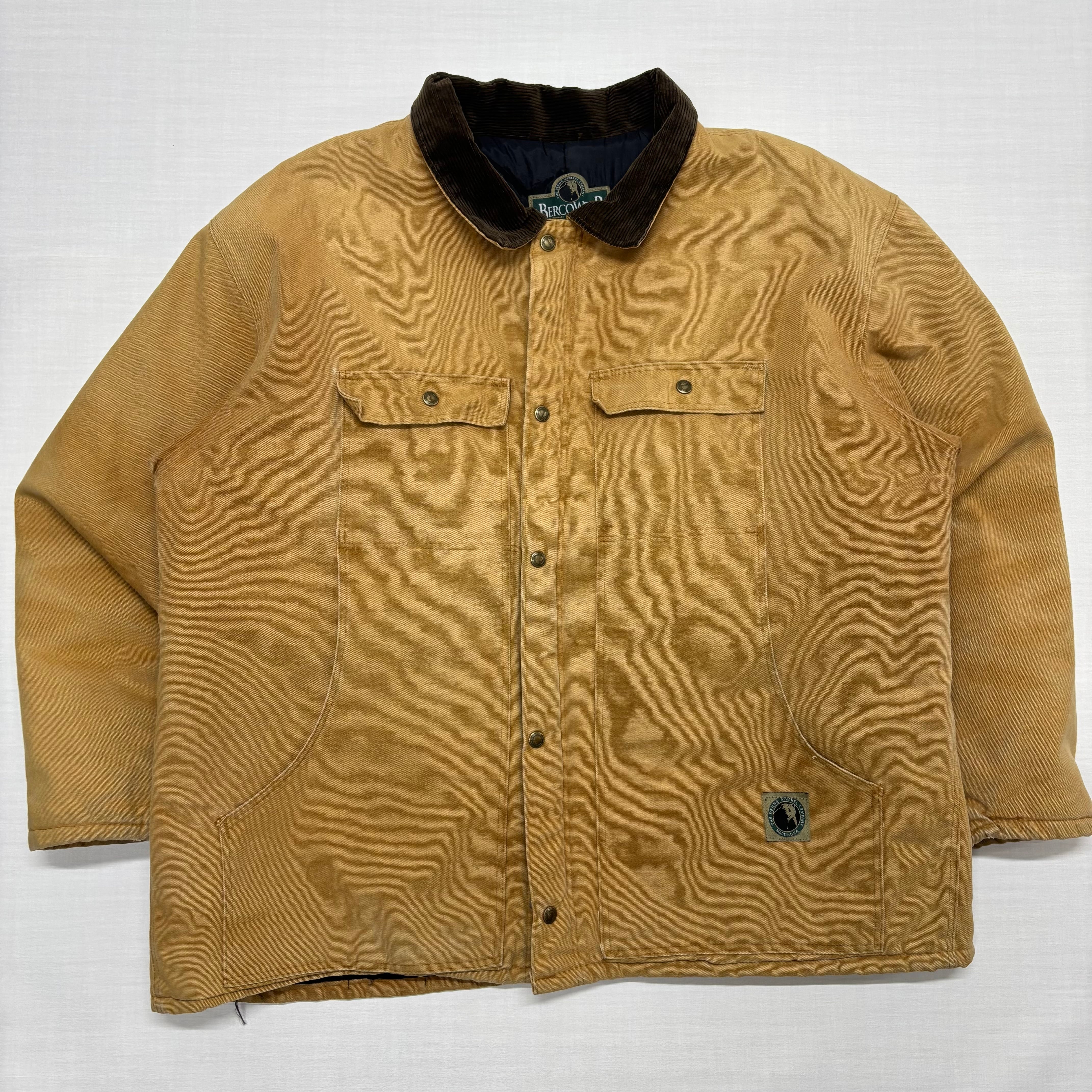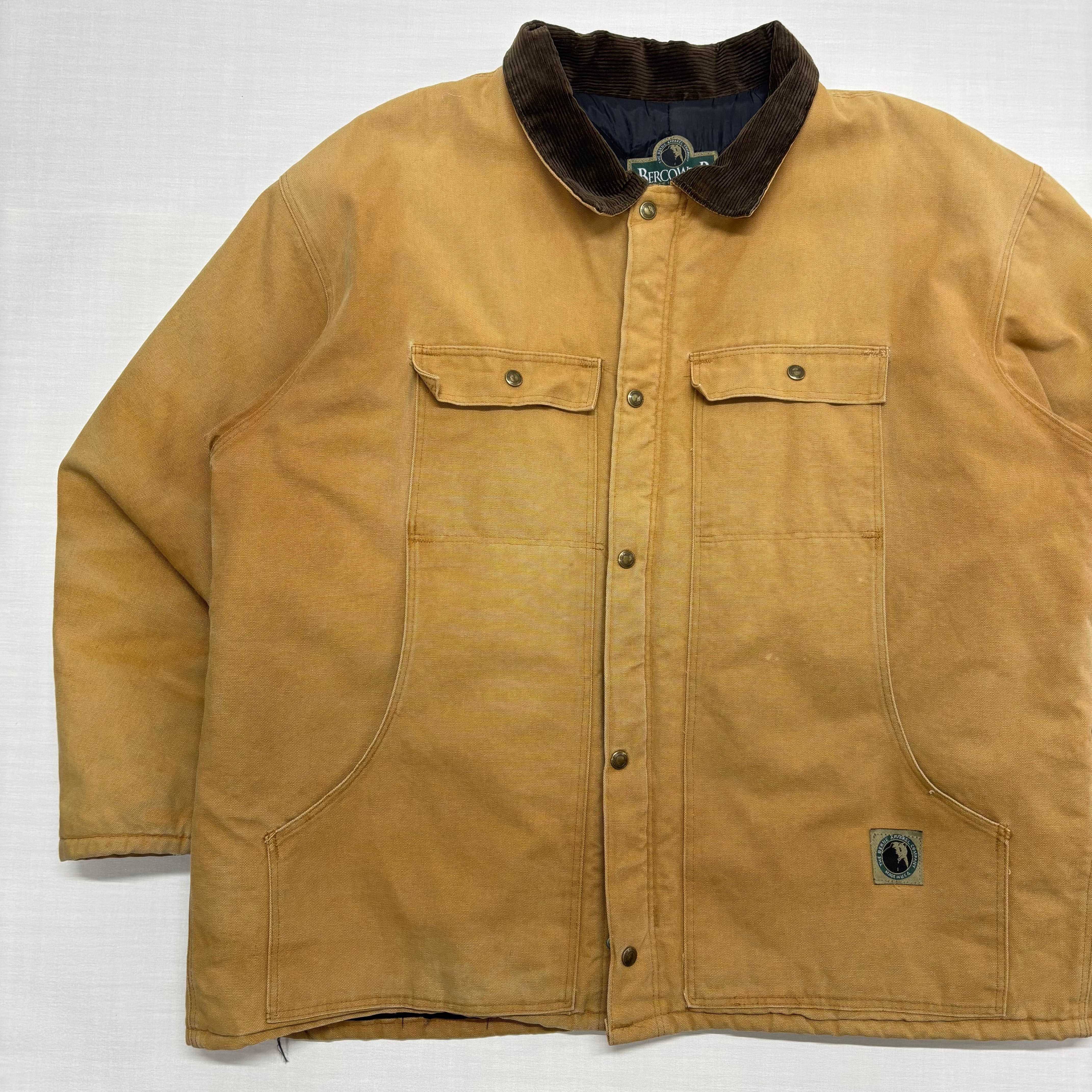 【XXL VINTAGE】USA製 BERNE バーン ダックジャケット ワークジャケット チョアコート ベージュ 襟コーデュロイ 52-54 XXL ボロ グランジ ダメージ 古着 アメカジ ストリート ビッグサイズ オーバーサイズ 90s【6066ST】