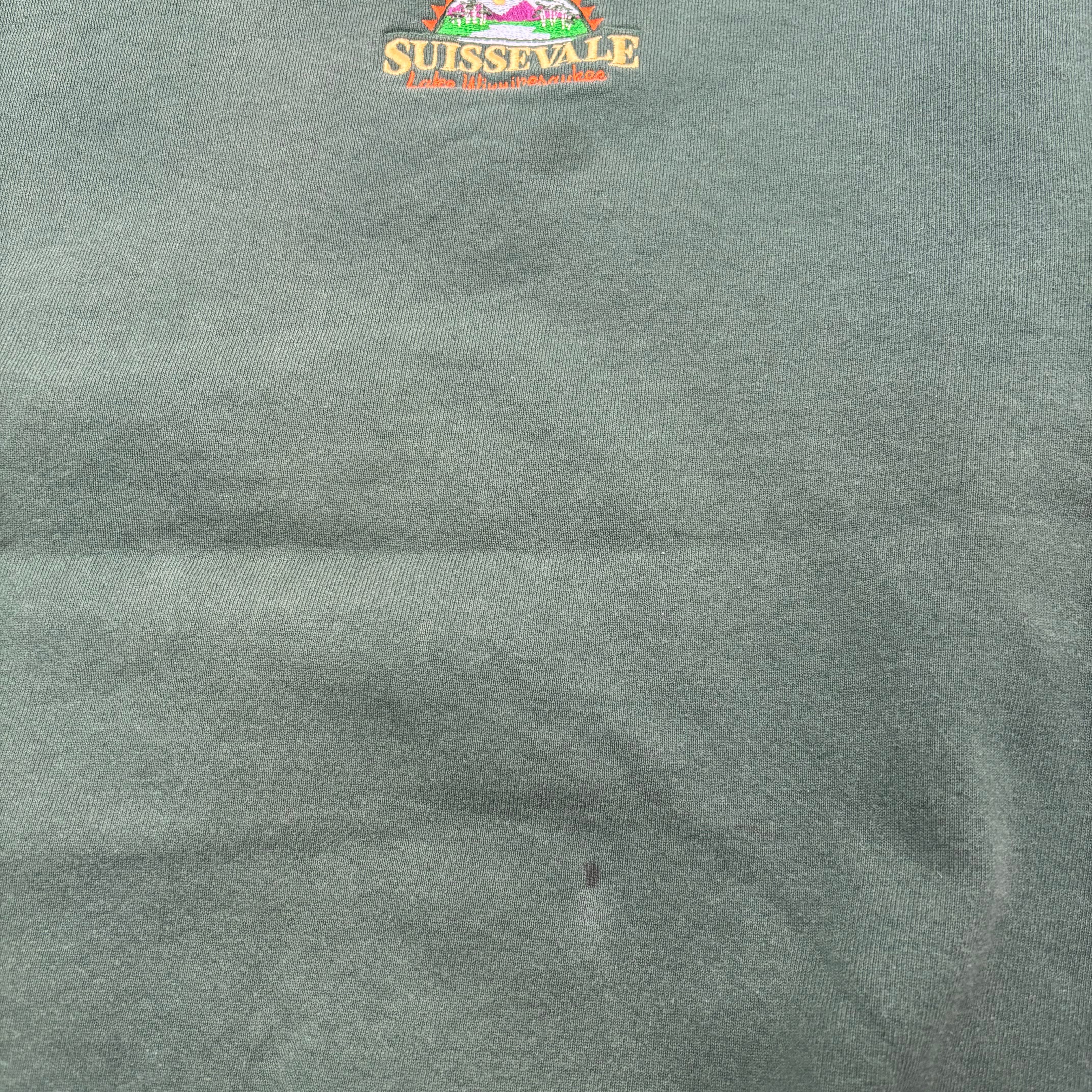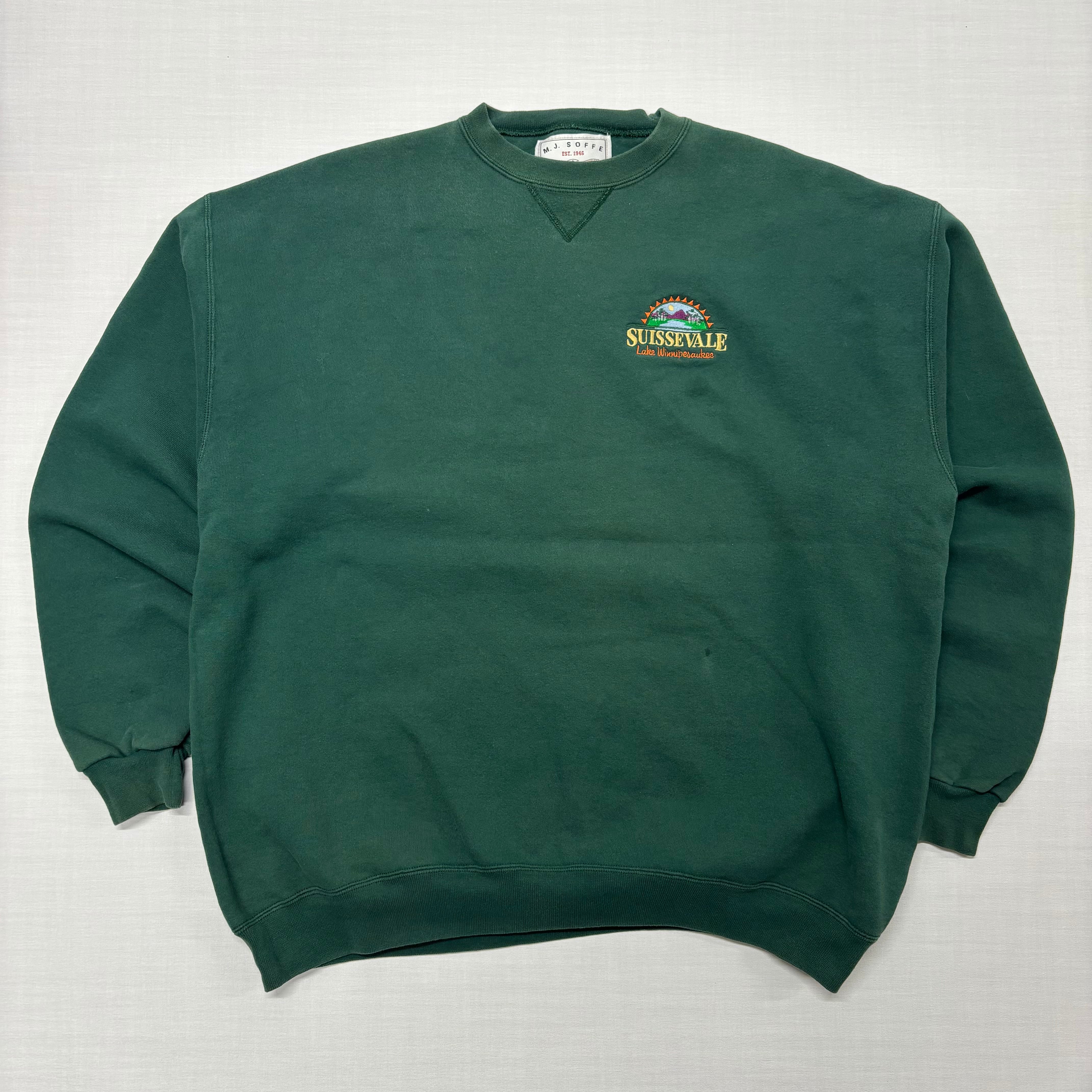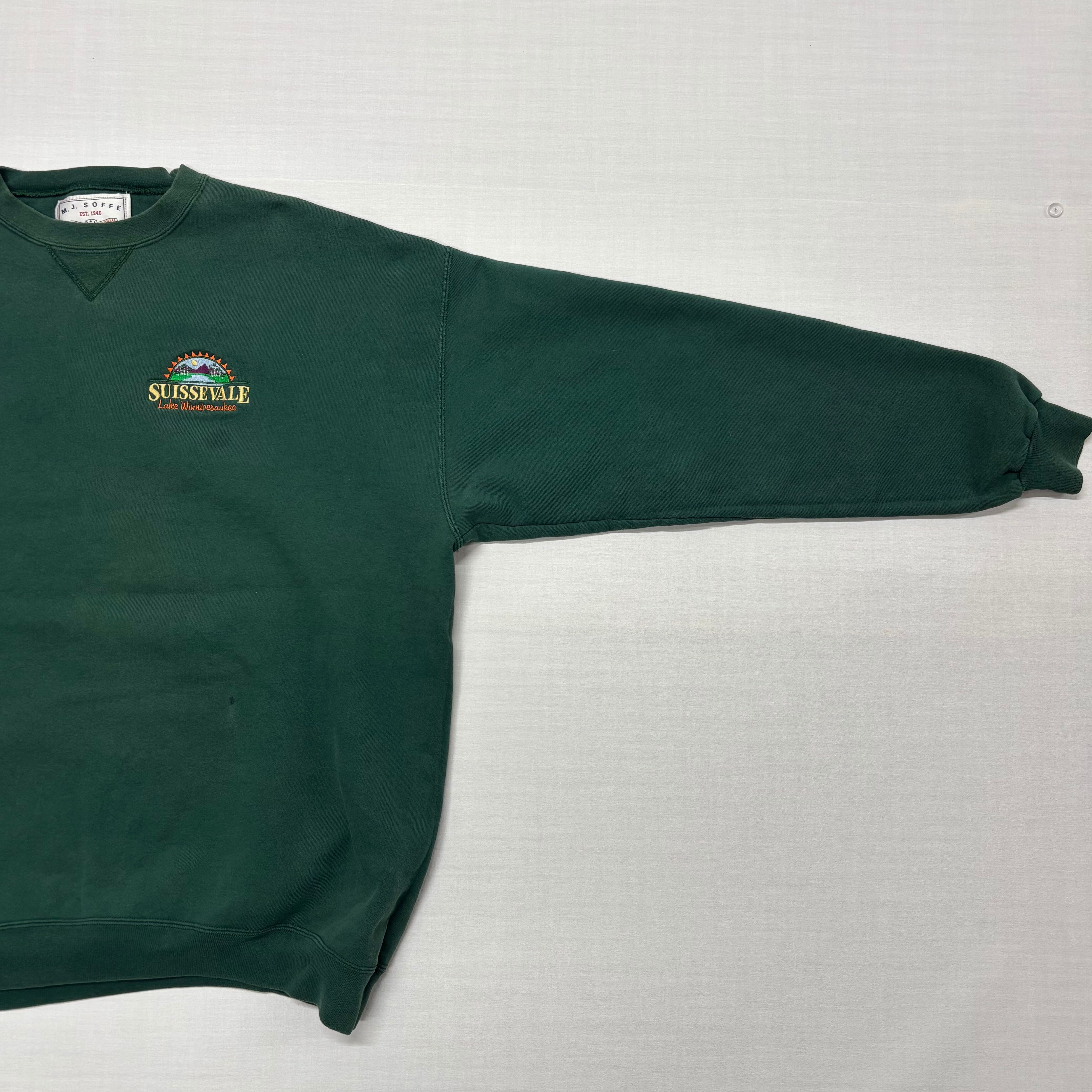 【XXL VINTAGE】SOFFE スウェット USA製 緑 XXL 刺繍ロゴ 前Vガゼット 90s ソッフェ Lake Winnipesaukee グリーン メンズ 大きいサイズ ゆるだぼ オーバーサイズ トレーナー アメカジ 古着 【3142ST】