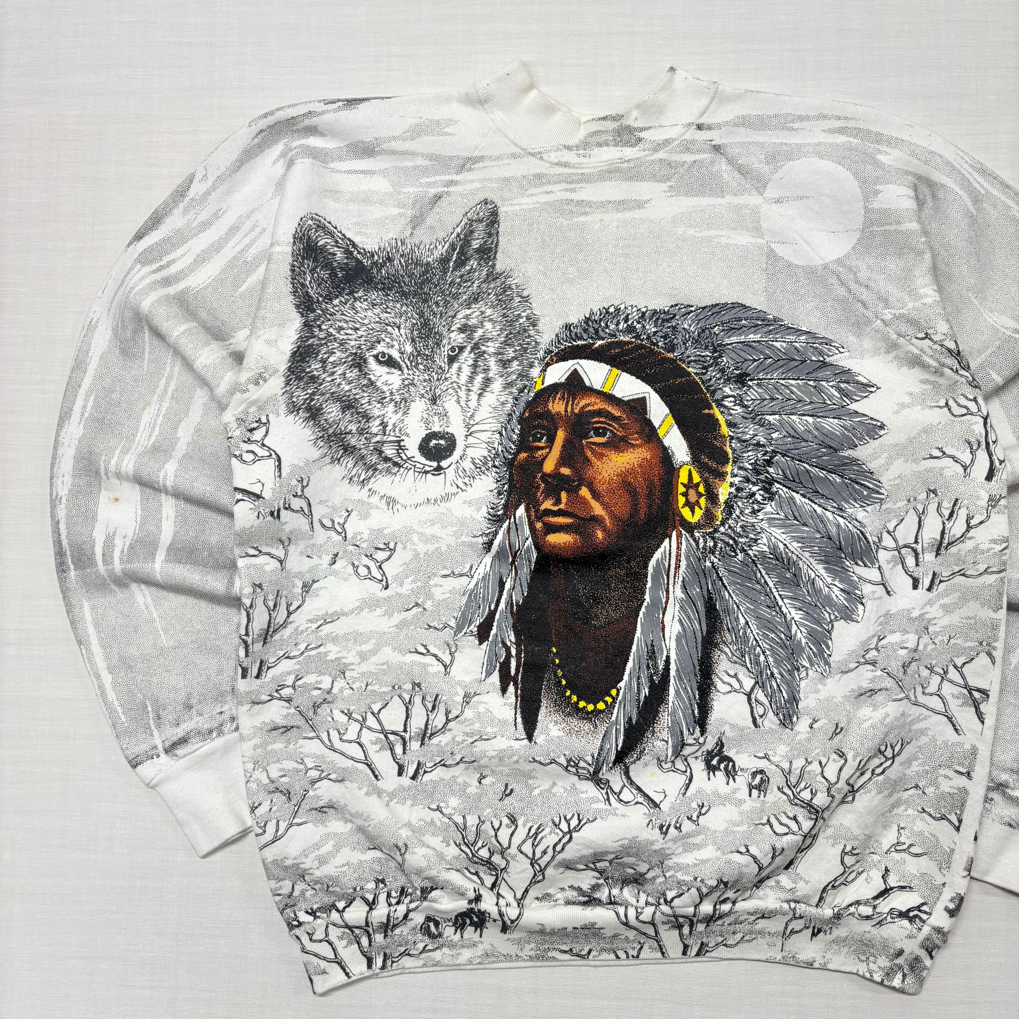 #古着 #ビンテージ #ヴィンテージ #90s #80s #USA製 #アメリカ製 #スウェット #トレーナー #総柄 #アニマル #狼 #ウルフ #インディアン #ネイティブアメリカン #アート #雰囲気系 #ボロ #オーバーサイズ #ビッグシルエット #ストリート #メンズ #レディース #個性的 #激レア