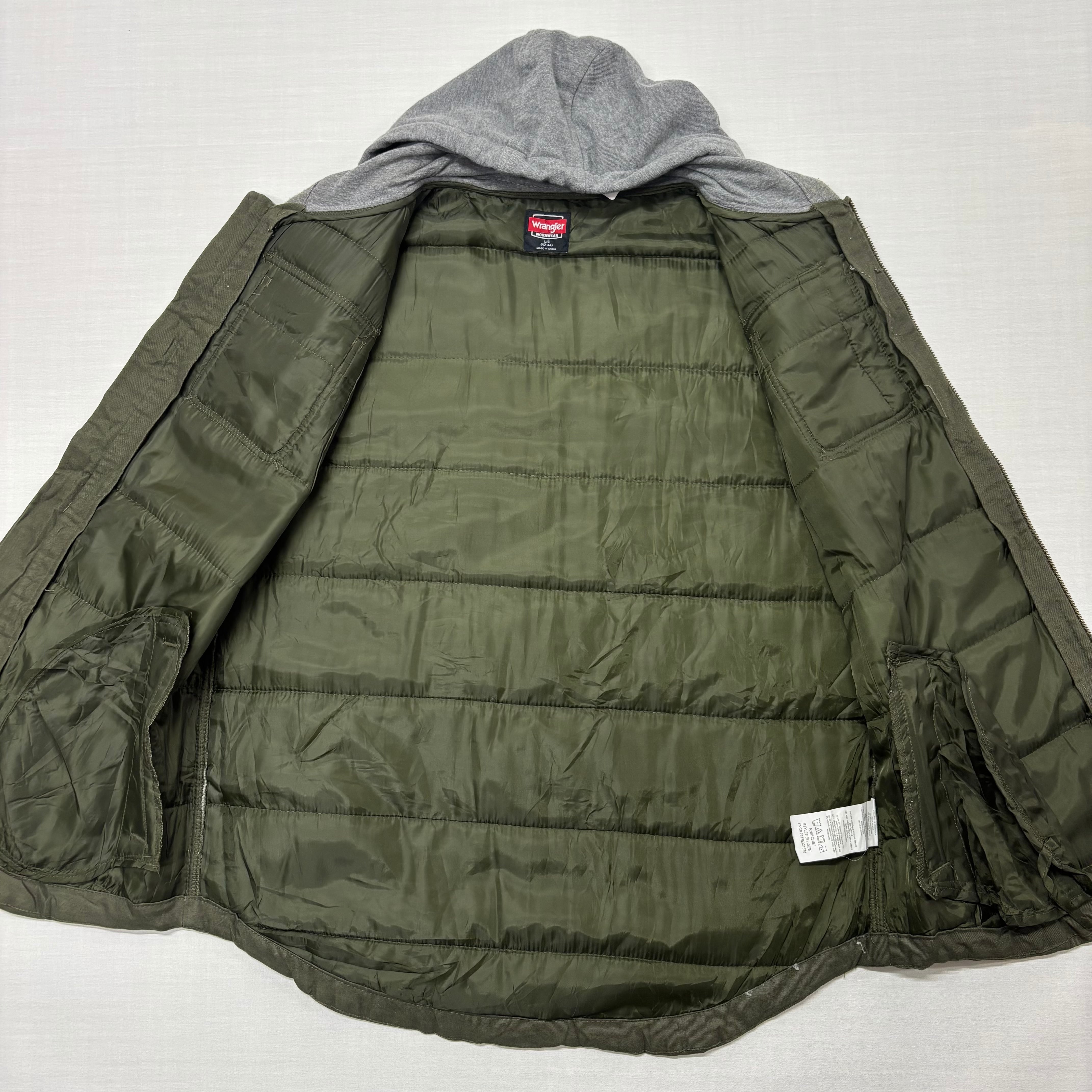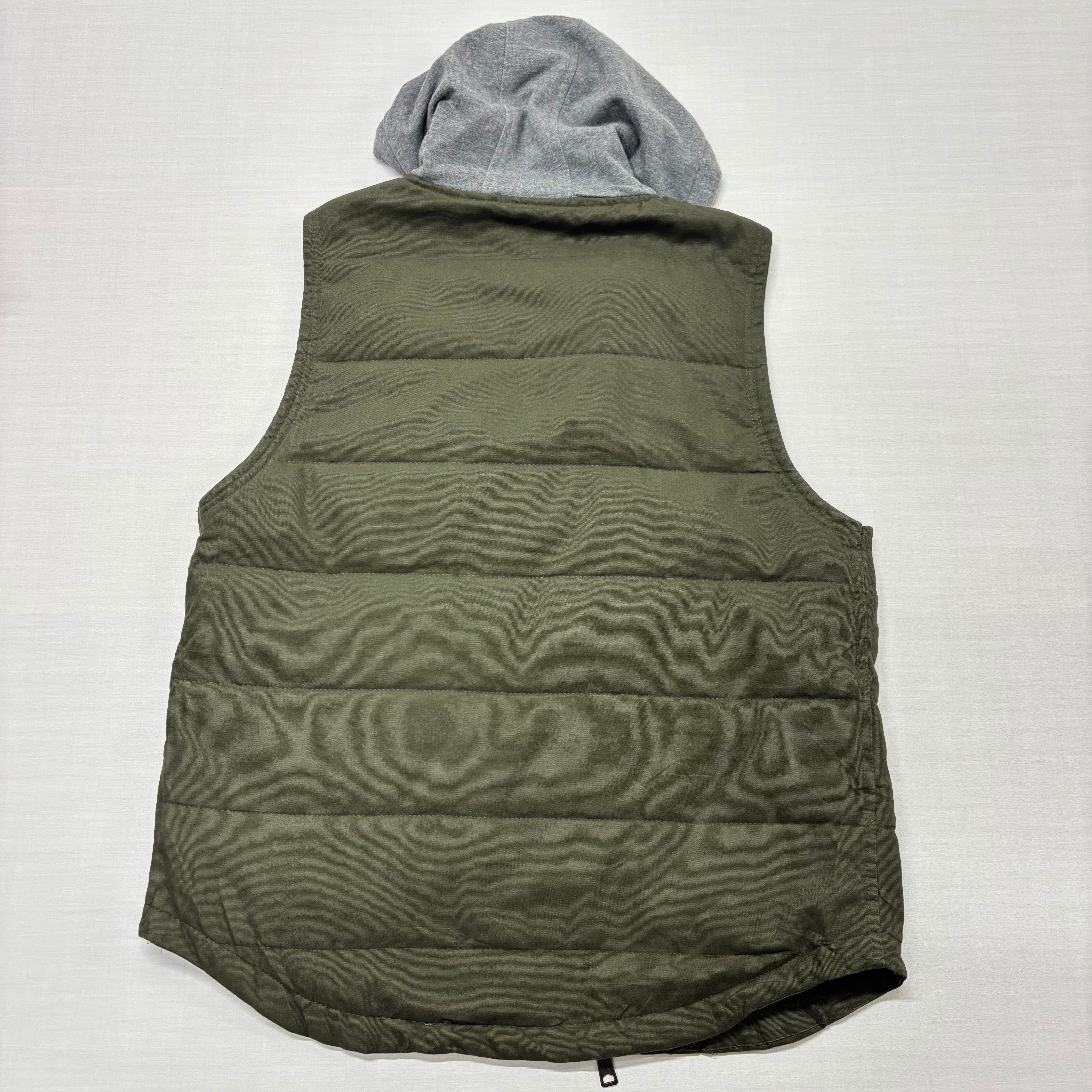 【ATTO】ラングラー ワークベスト 中綿 フード L オリーブグリーン カーキ キルティング アウトドア アメカジ【6073ST】
