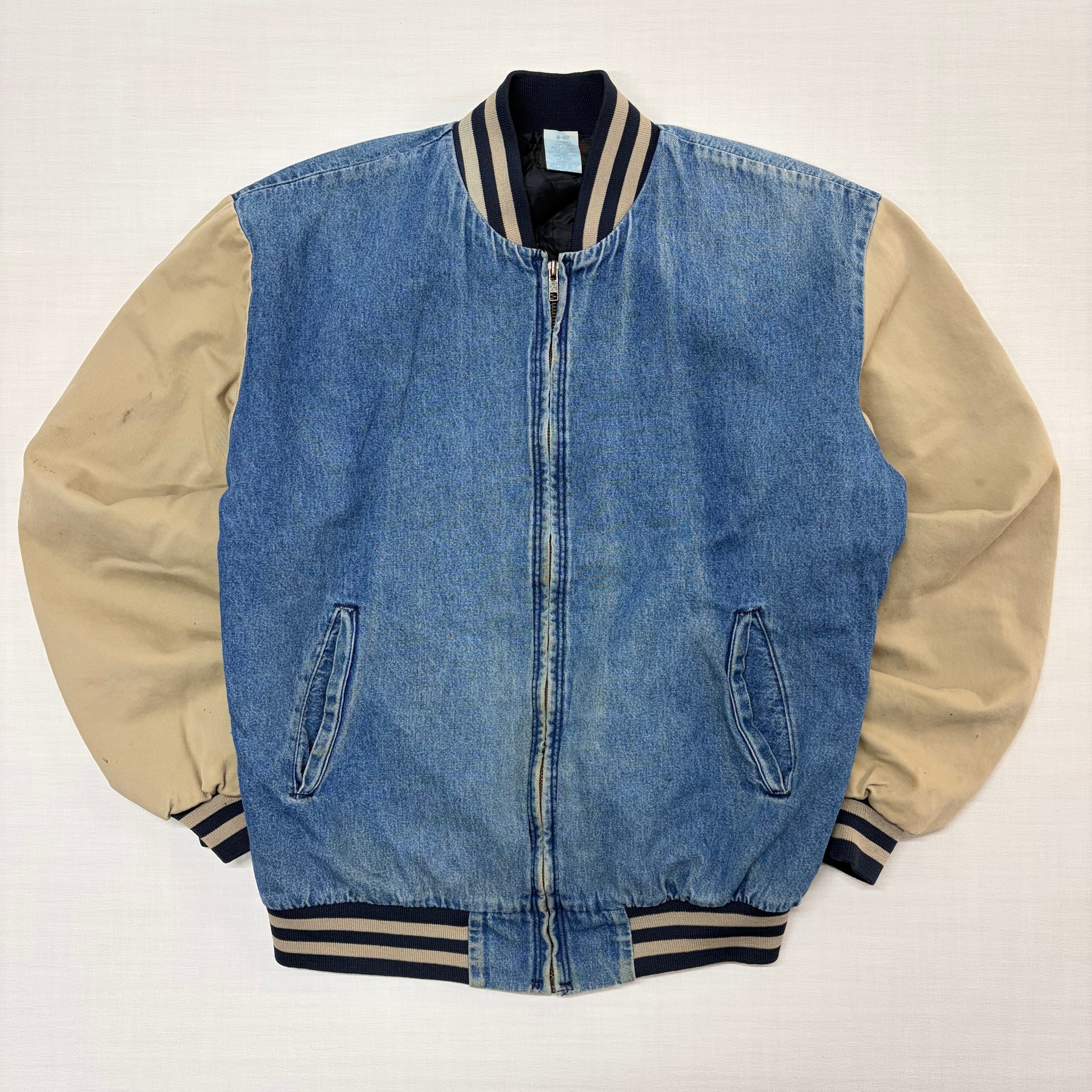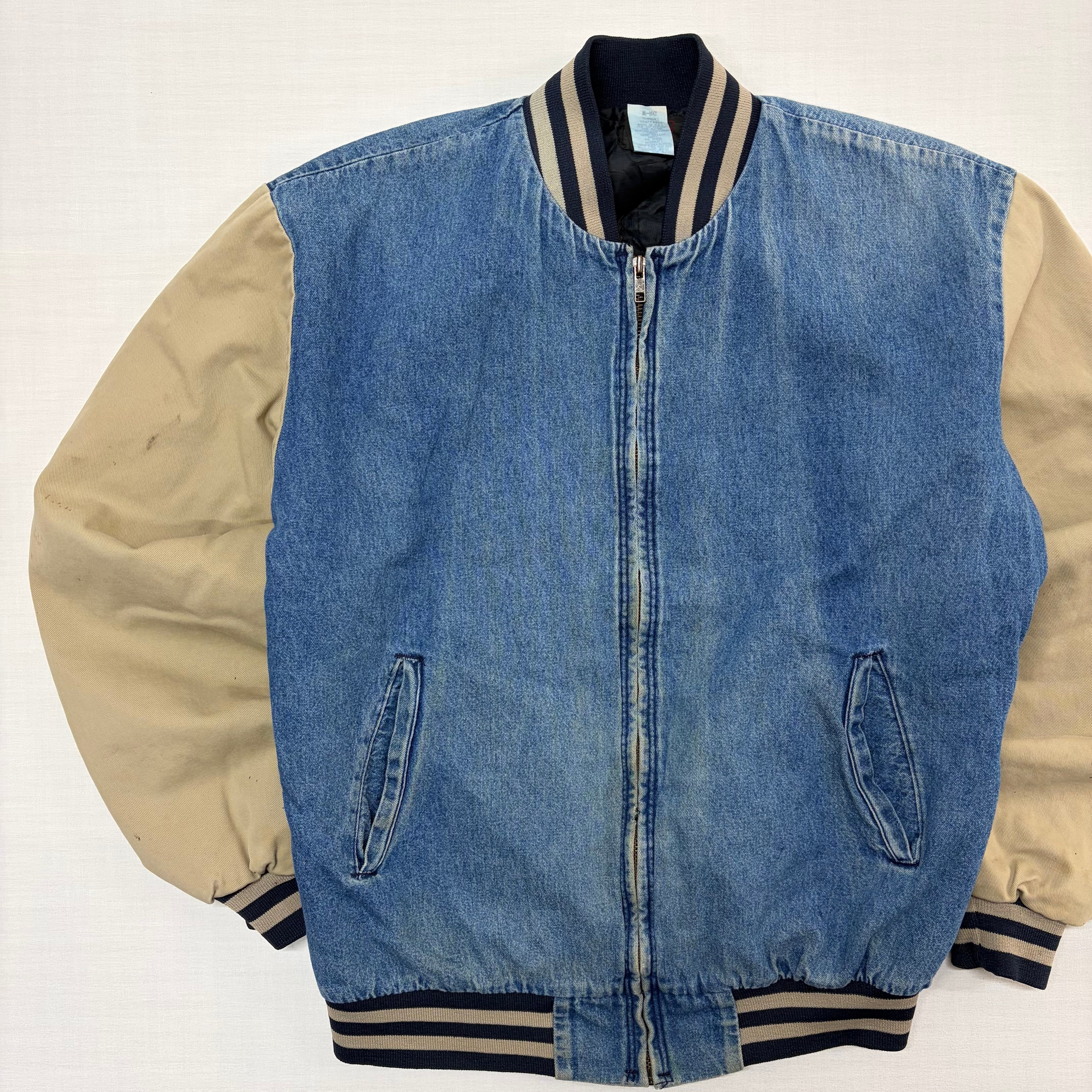 ボディはウォッシュのかかったブルーデニム、袖はベージュのタフなコットン素材(ダック地風)で切り替えられた、アメカジ好きにはたまらないデザイン。