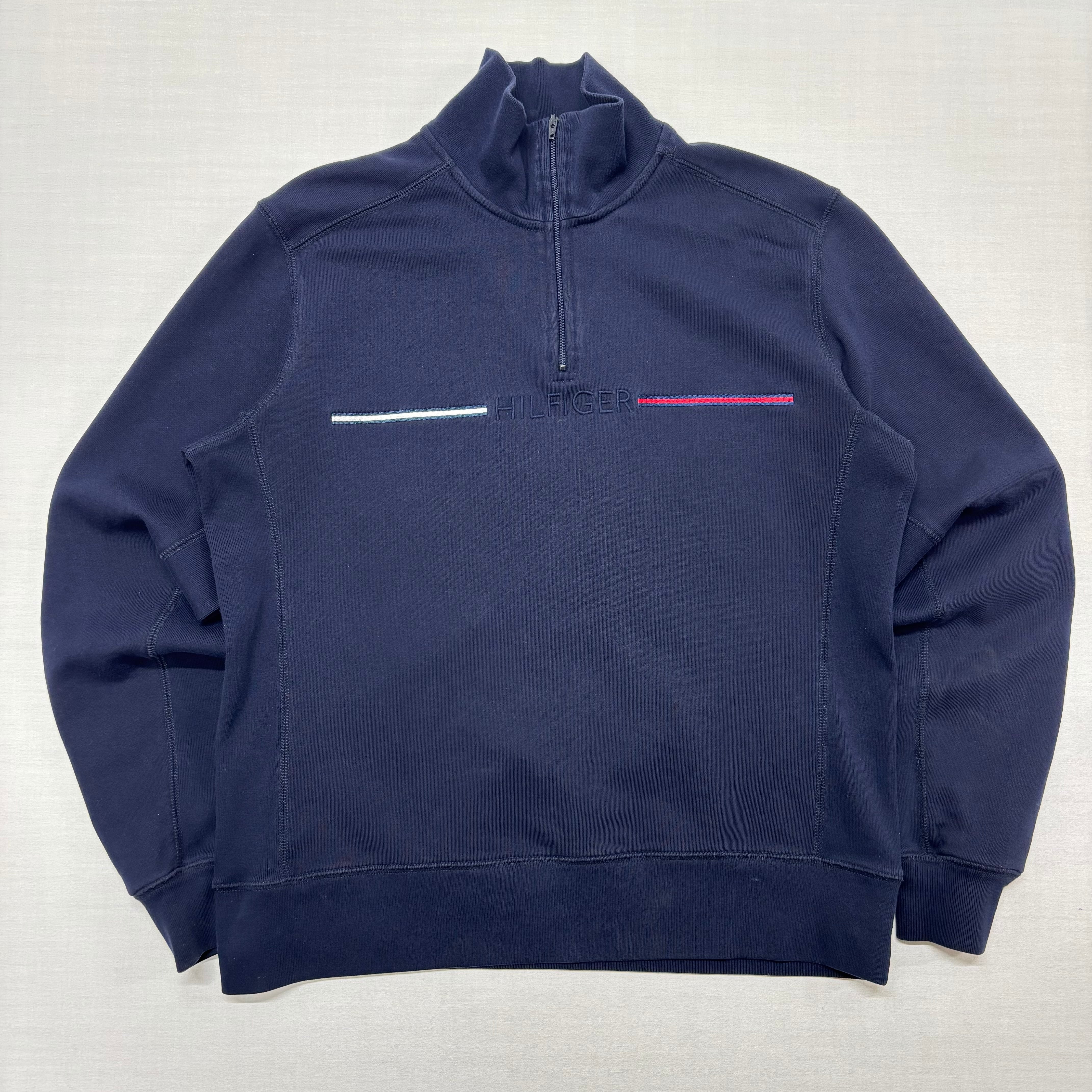【ATTO】トミーヒルフィガー ハーフジップ スウェット M ネイビー 紺 刺繍 古着 トレンド【3163ST】